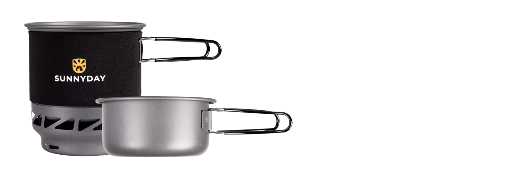 Две кастрюли (750 мл и 250 мл) позволяют готовить еду или разогревать напитки. Компактный дизайн и продуманная сборка экономят место в рюкзаке.